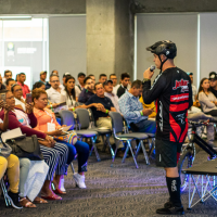 Una charla-performance donde Javier narra su historia personal mientras realiza una demostración en bicicleta. Ideal para empresas que buscan motivar a sus equipos con un enfoque vivencial, emocional y diferente.